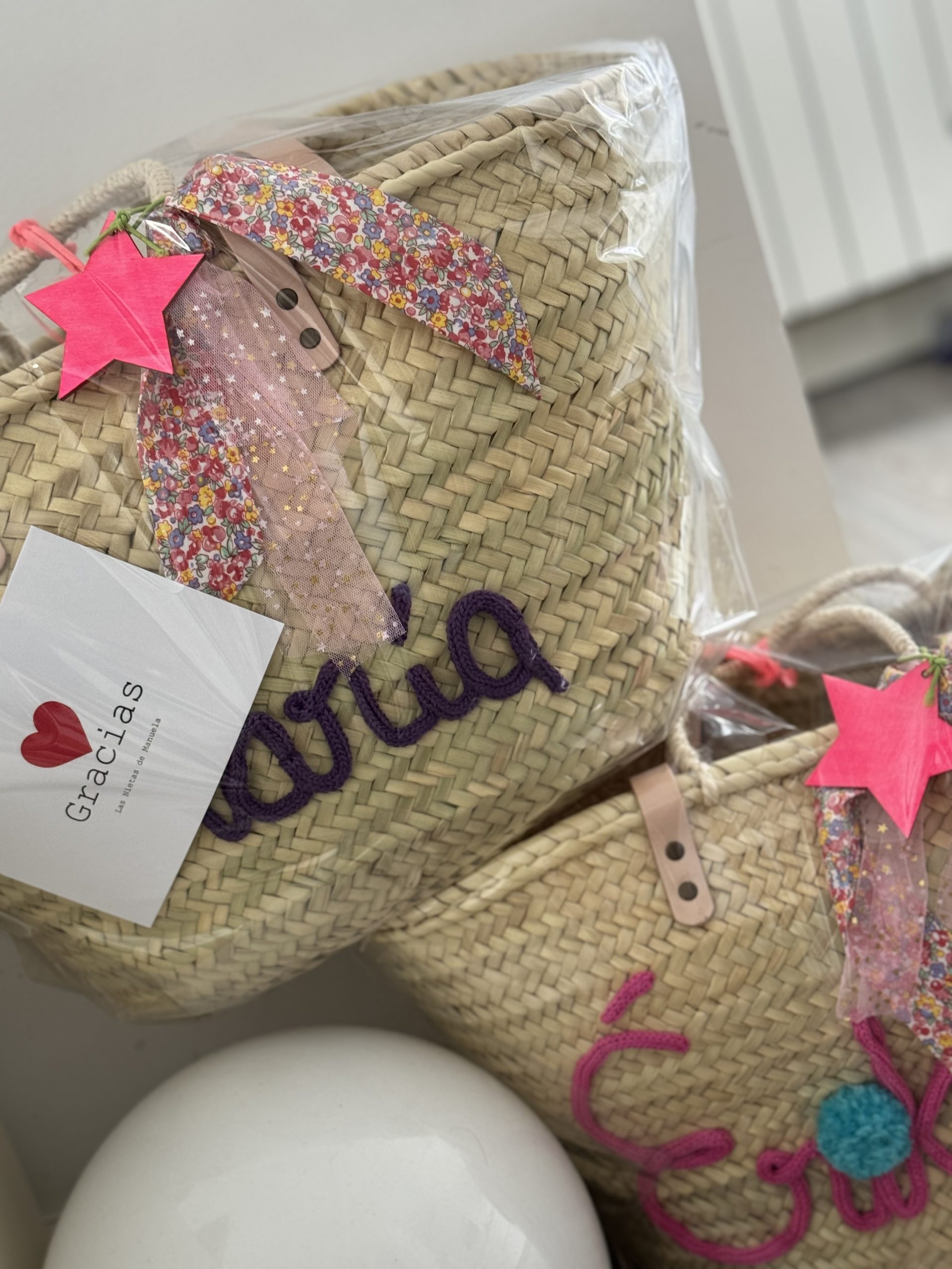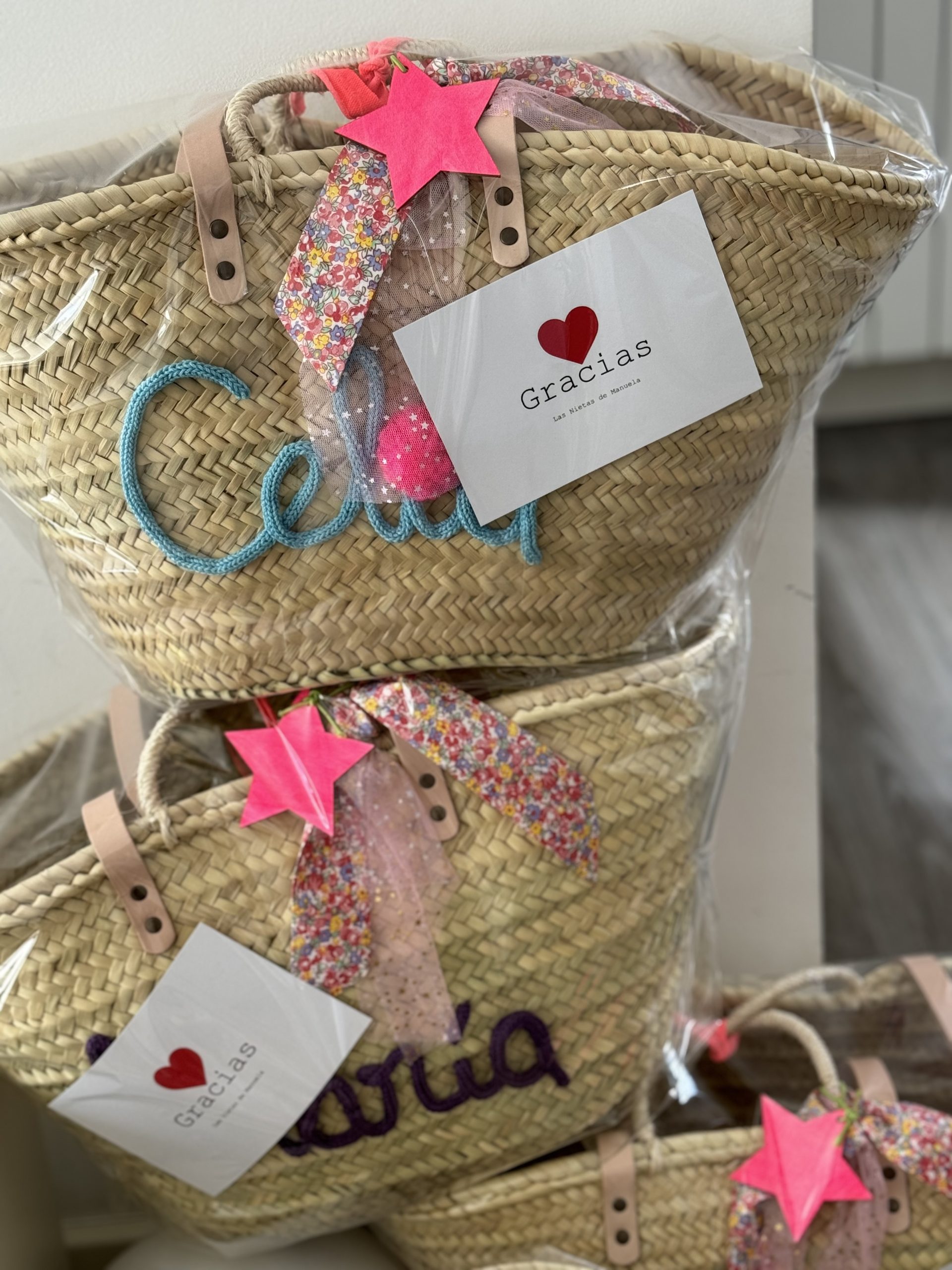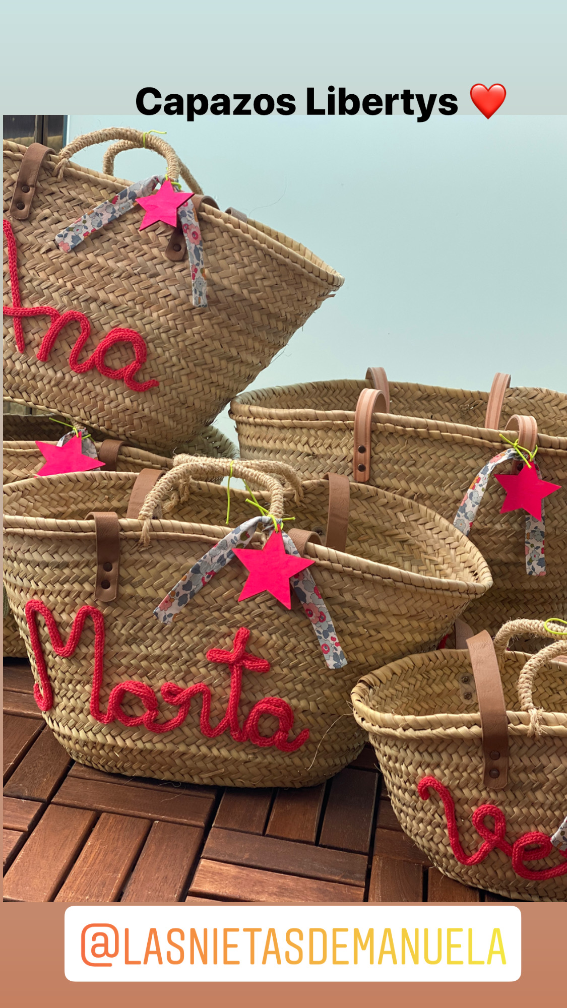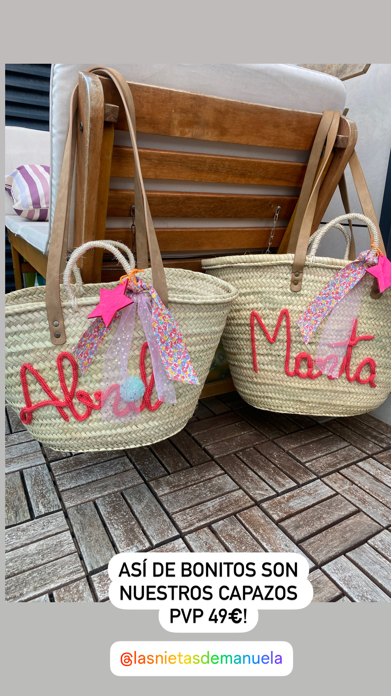 Capazos con asa de pita y asa de cuero.