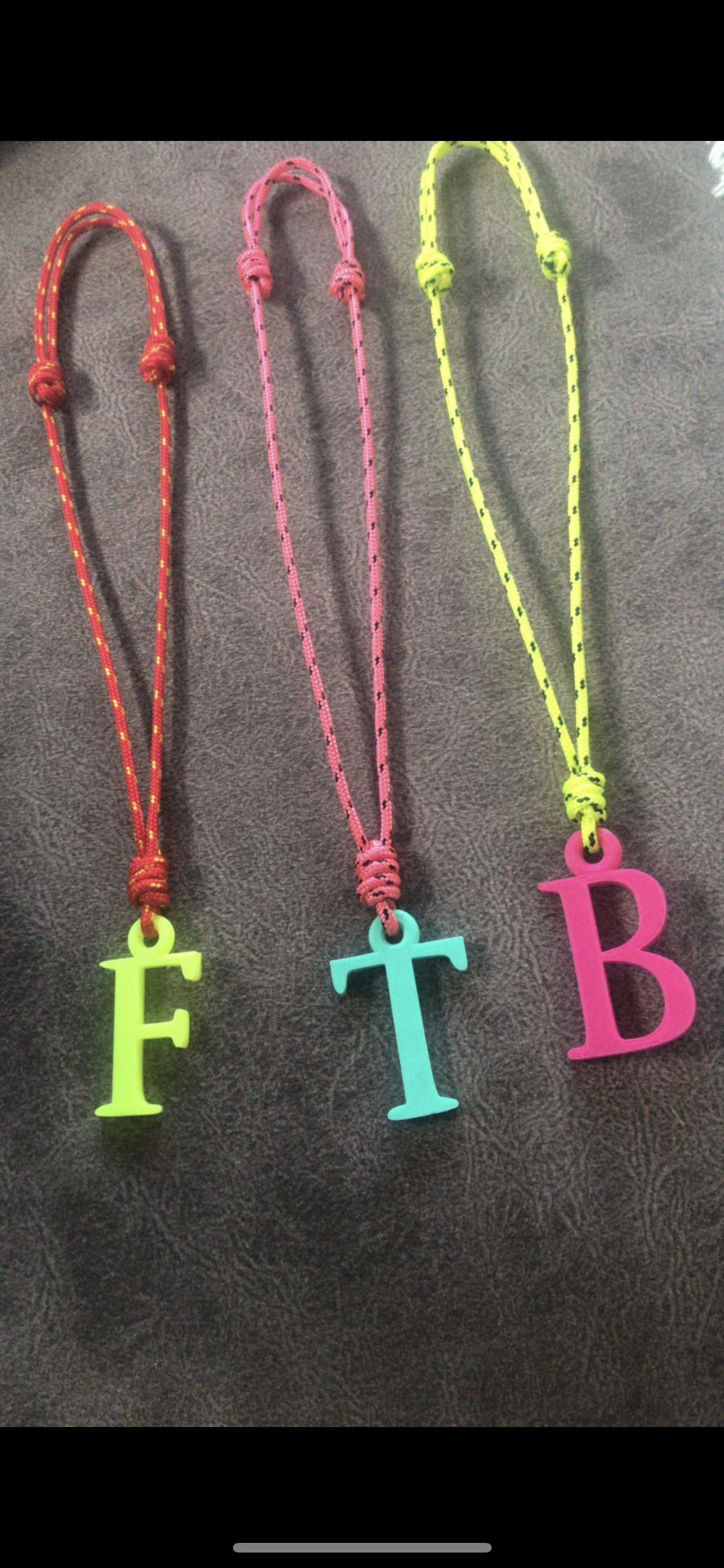 Collares personalizados con la inicial y cordón con nudos. Hechos con un material súper resistente, llamado PLA que se moldea y se hacen millones de cositas!!! Un acierto como regalo❤️Deja tu inicial y el color del cordón en comentarios al finalizar el pedido.