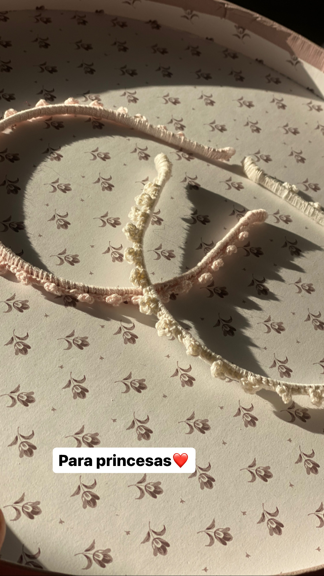 Diadema realizada en crochet. Ideal para algún evento o para darle un toque a la ropita de vuestras princesas. Talla única.Si buscas un color en especial pregúntanos.