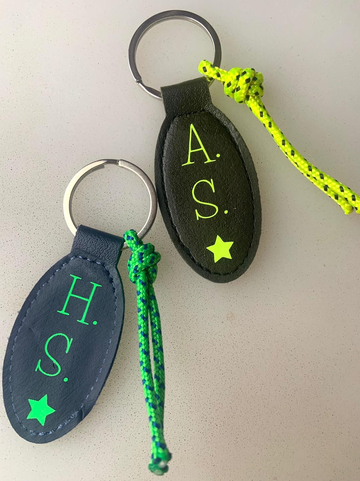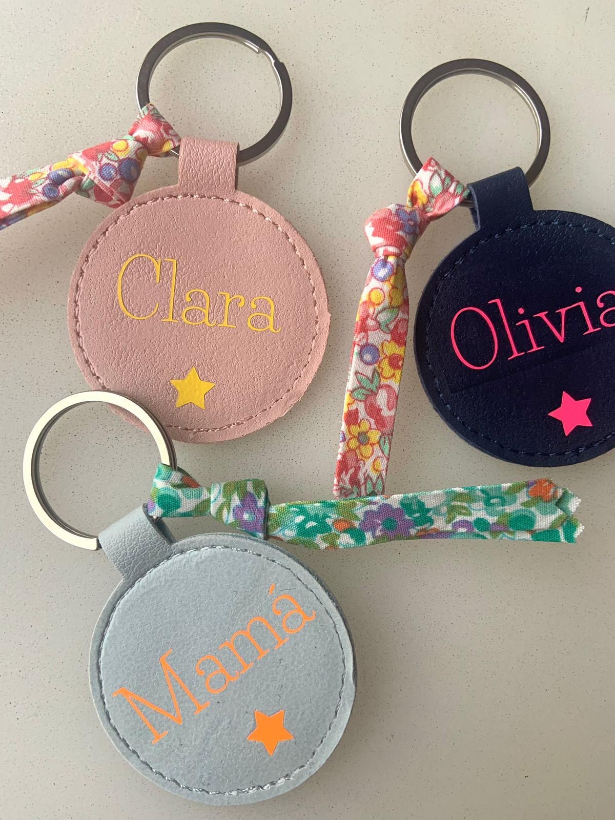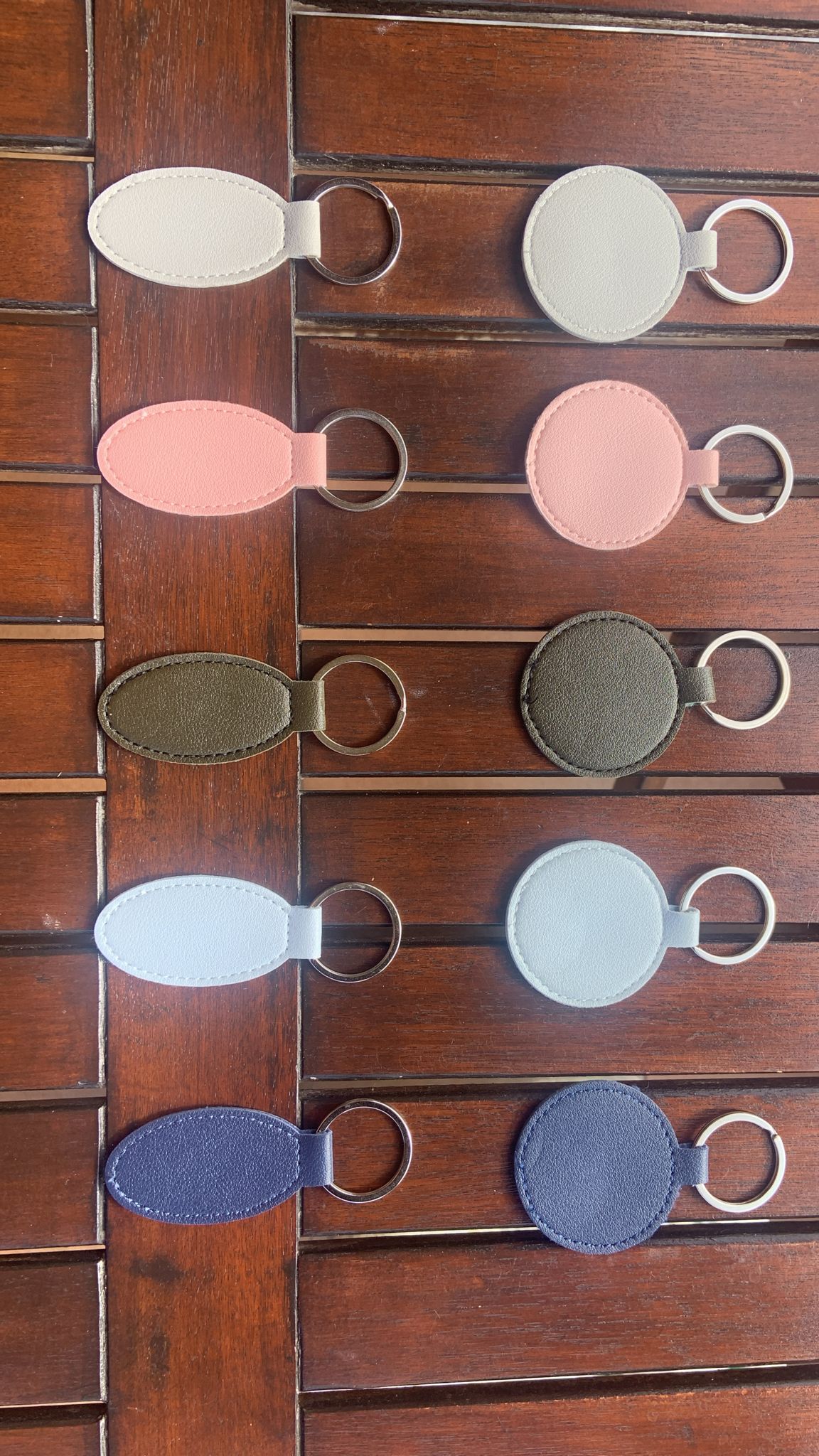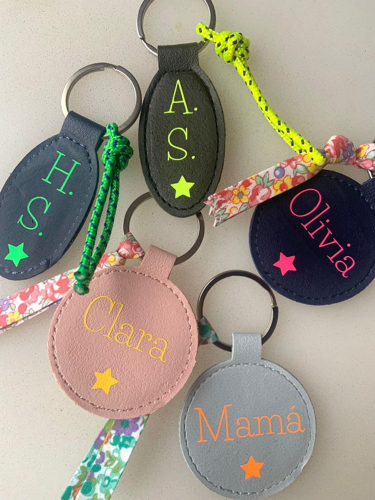 Llaveros personalizados de polipiel redondos y ovalados con el nombre o iniciales.