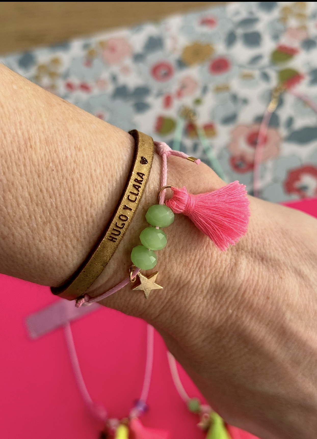 EL hilo puede ir en 4 colores rosa, malva, verde agua y azul.
