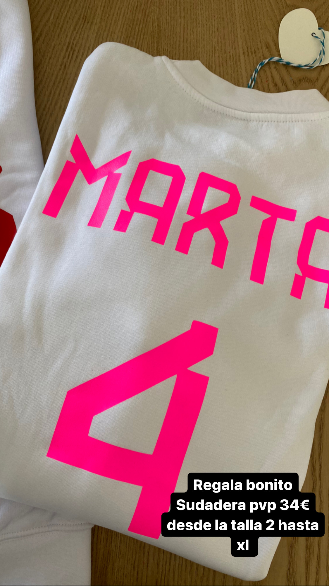 En comentarios puede decirnos el nombre y número que quieres que figure en la sudadera.
